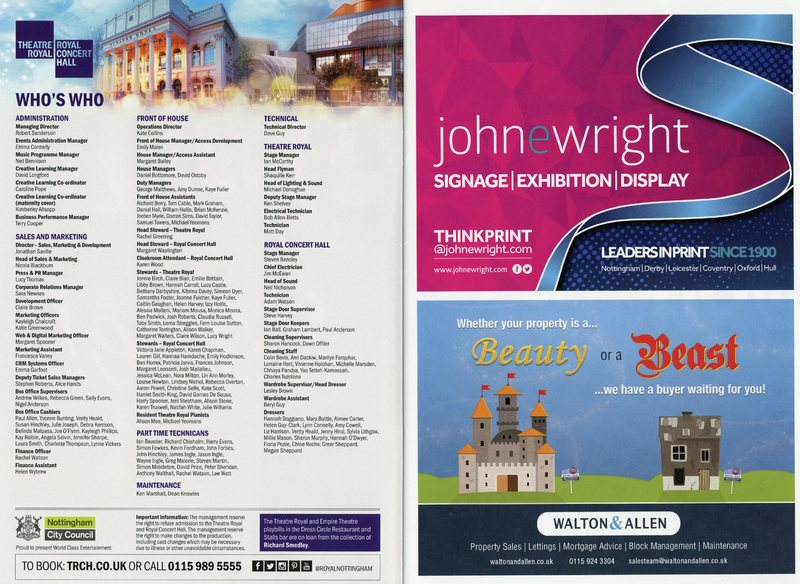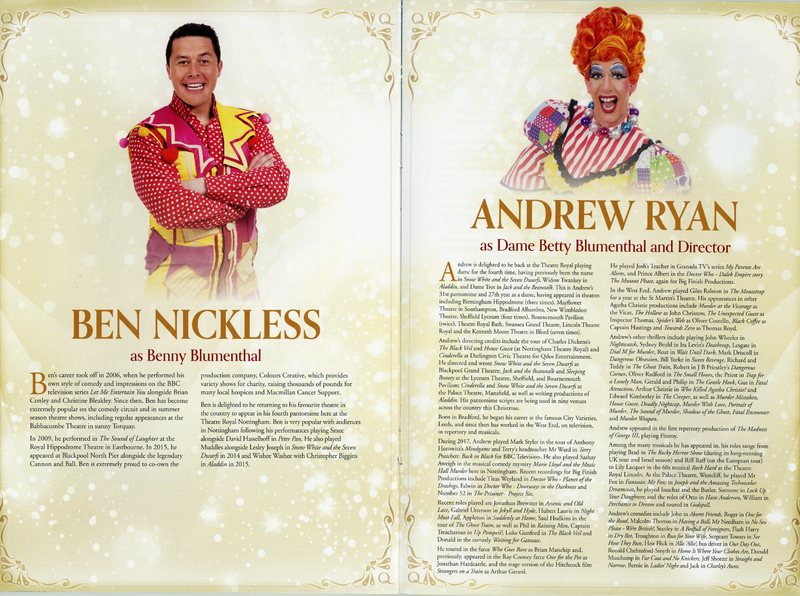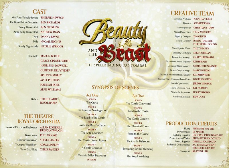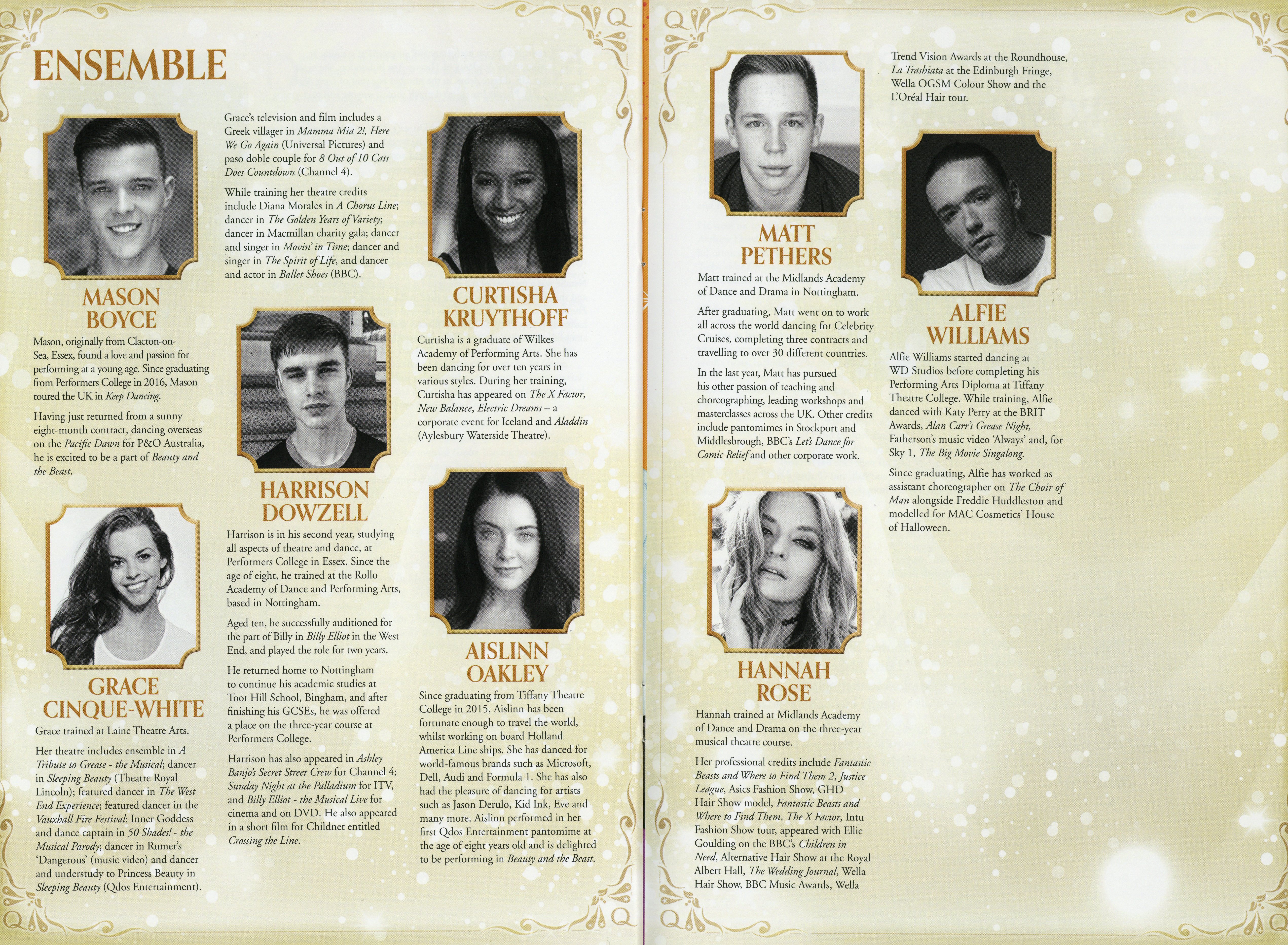 Selected pages from programme for Beauty and the Beast, the Theatre Royal Pantomime for 2017.