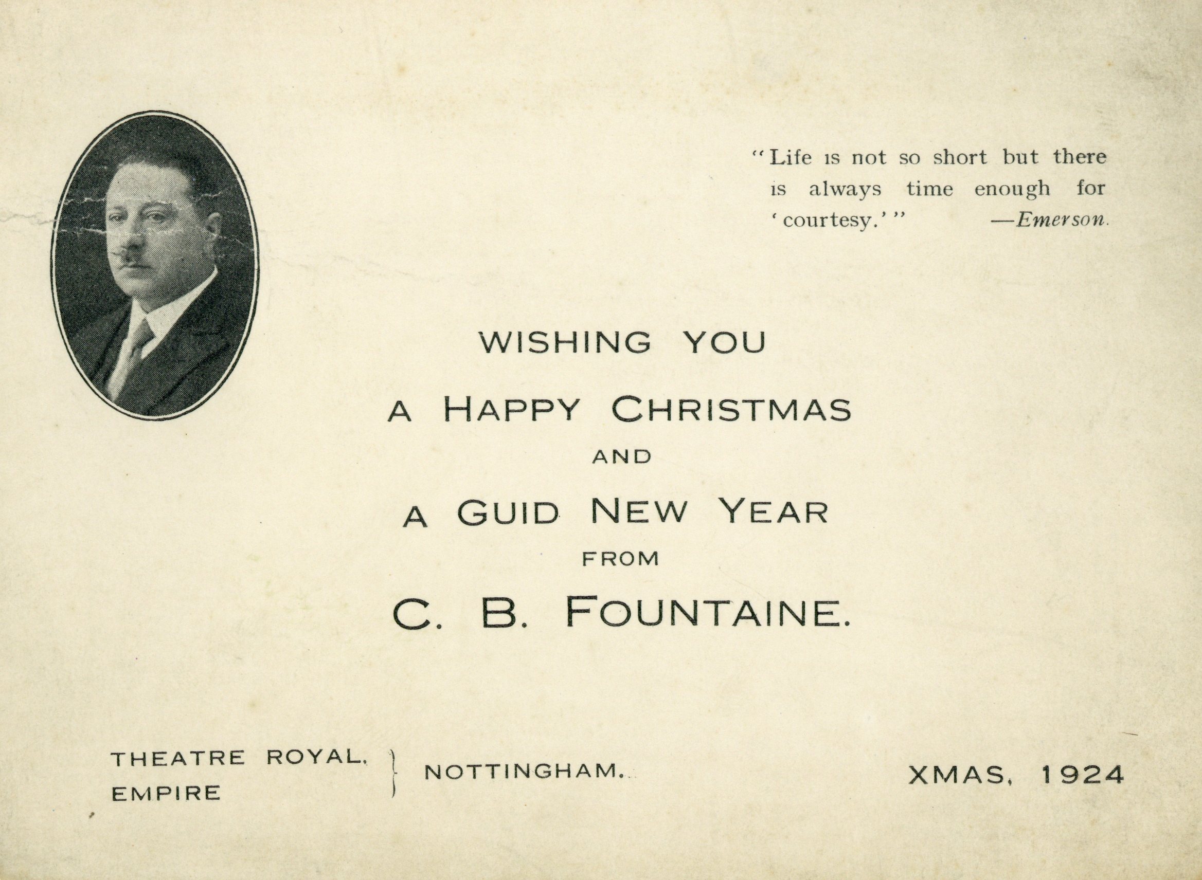 Postcard from 1924 with Christmas message from CB Fountaine, the manager of both the Theatre Royal and the Empire.