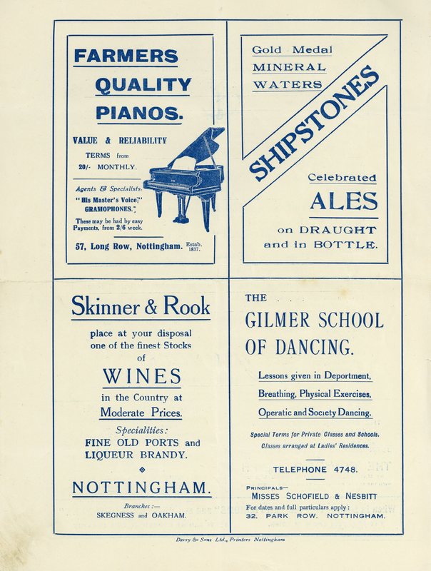 Also, notable in this programme is the note informing us that ‘This Theatre is sprayed with “Floral Spray” manufactured and supplied by Messrs. Cassons, Basford, Notts.’ What was this spray covering up?