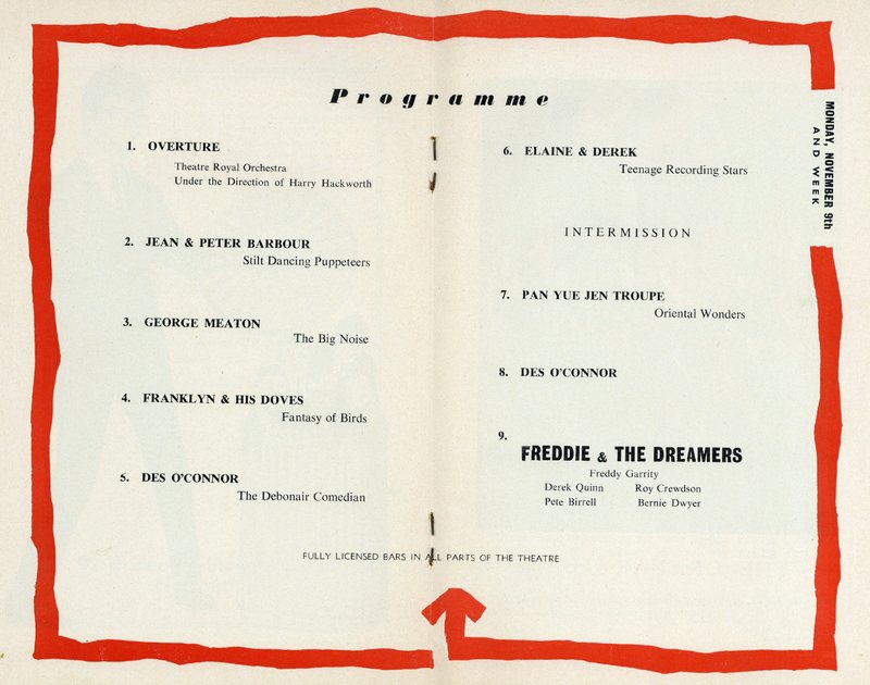 Manchester pop band Freddie and the Dreamers had a number of chart hits between 1963 and 1965 and so these Theatre Royal performances would have been hugely popular.