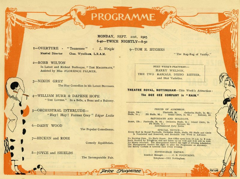 Programme for variety show at the Nottingham Empire, the sister venue to the Theatre Royal Nottingham.