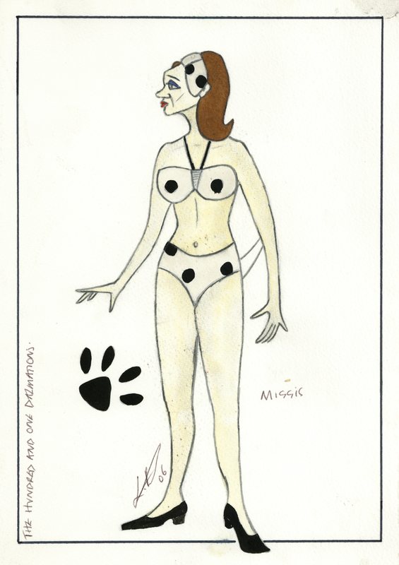 The final and real costume designs can be seen in The Hundred and One Dalmatians production photographs, in the related link below.
