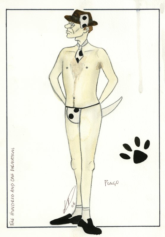 David Longford explained that they did not want big dog outfits, but instead wanted to focus on the core of the performance and so clothes in this instance would be a hindrance. Hence, this stripped-down costume, with just token spotted Dalmatian underwear to protect modesty. It was a family show after all.