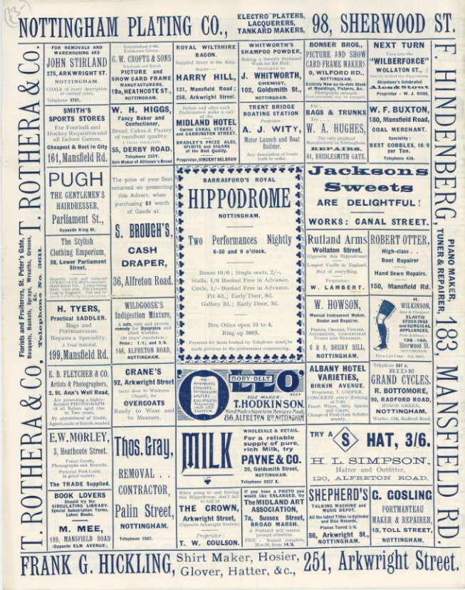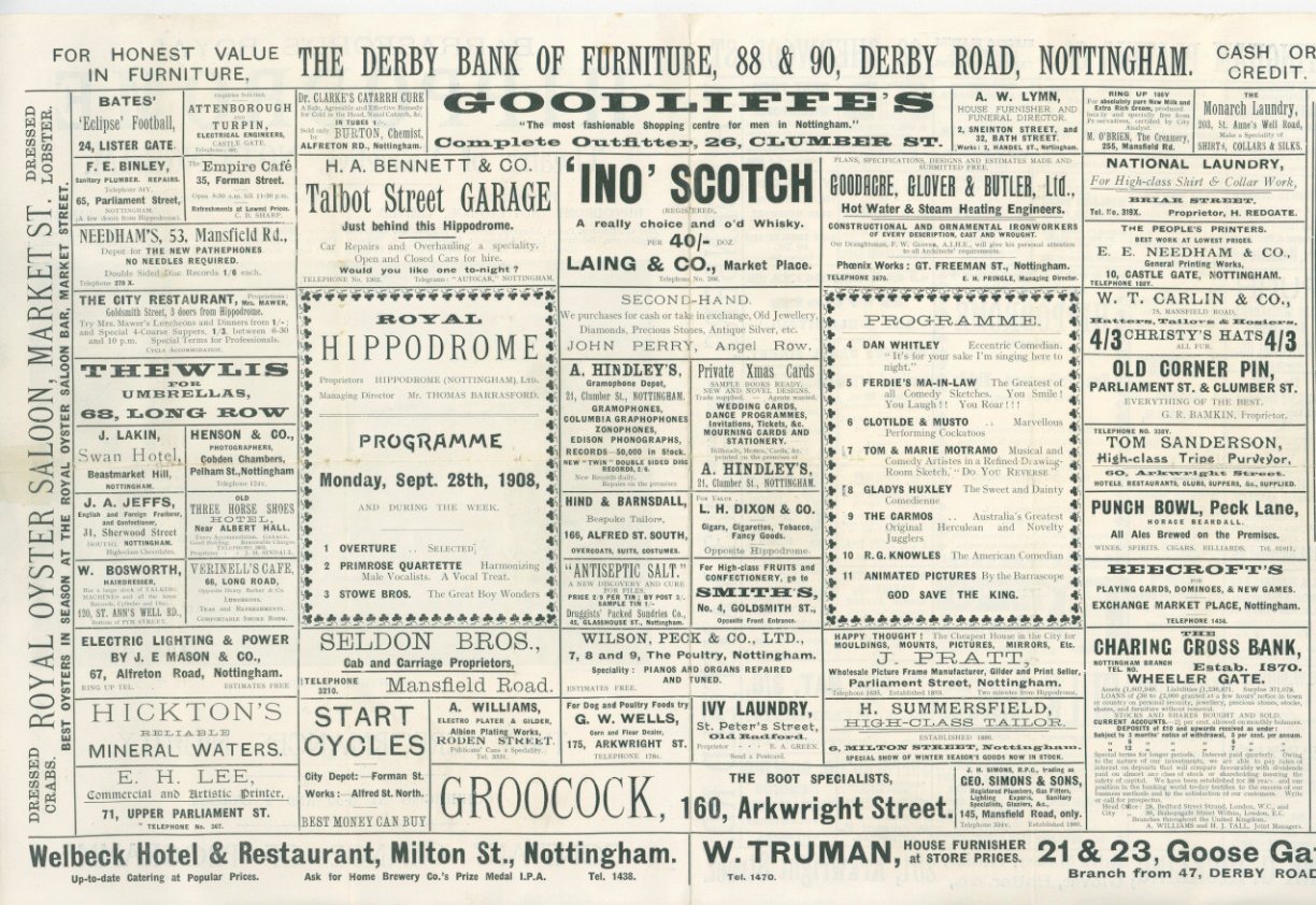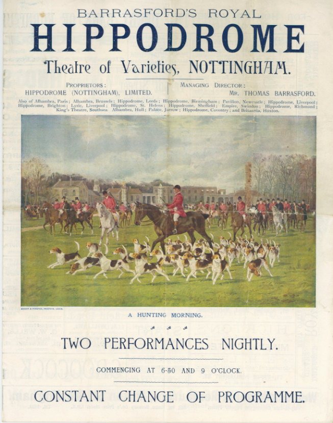 Programme for Nottingham Hippodrome, neighbouring venue to the Theatre Royal