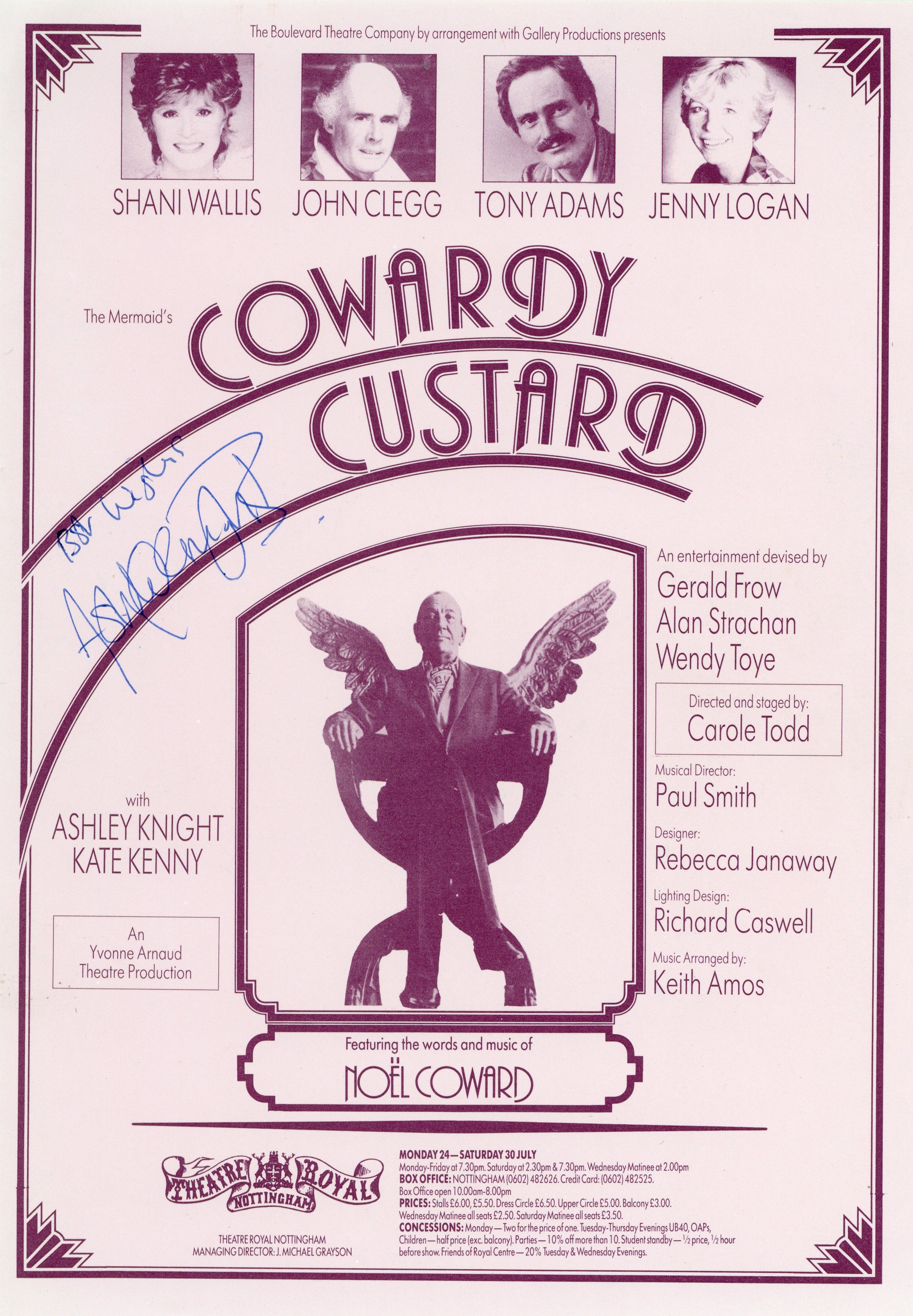 Featuring the words and music of Noel Coward, Cowardy Custard (a title suggested by Coward himself) was devised by Gerald Frow, Alan Strachan and Wendy Toye and featured a number of pieces of Coward’s work from the 1920s to 1960s, including Mad About the Boy, The Stately Homes of England and Marvellous Party, as well as previously unpublished material.