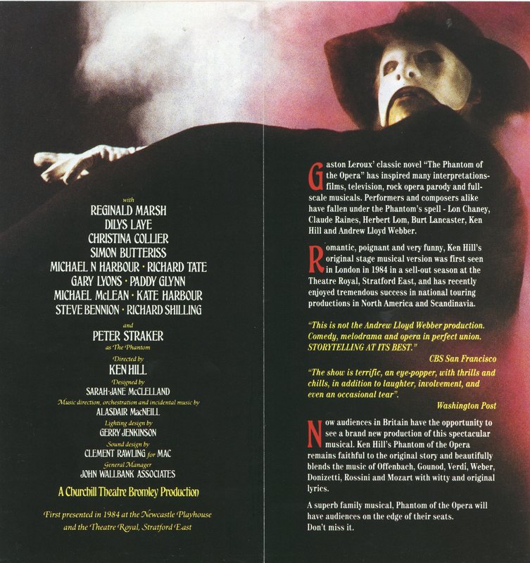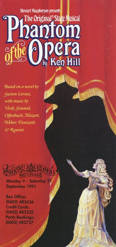 Fold-out leaflet for musical version of The Phantom of the Opera by Ken Hill
