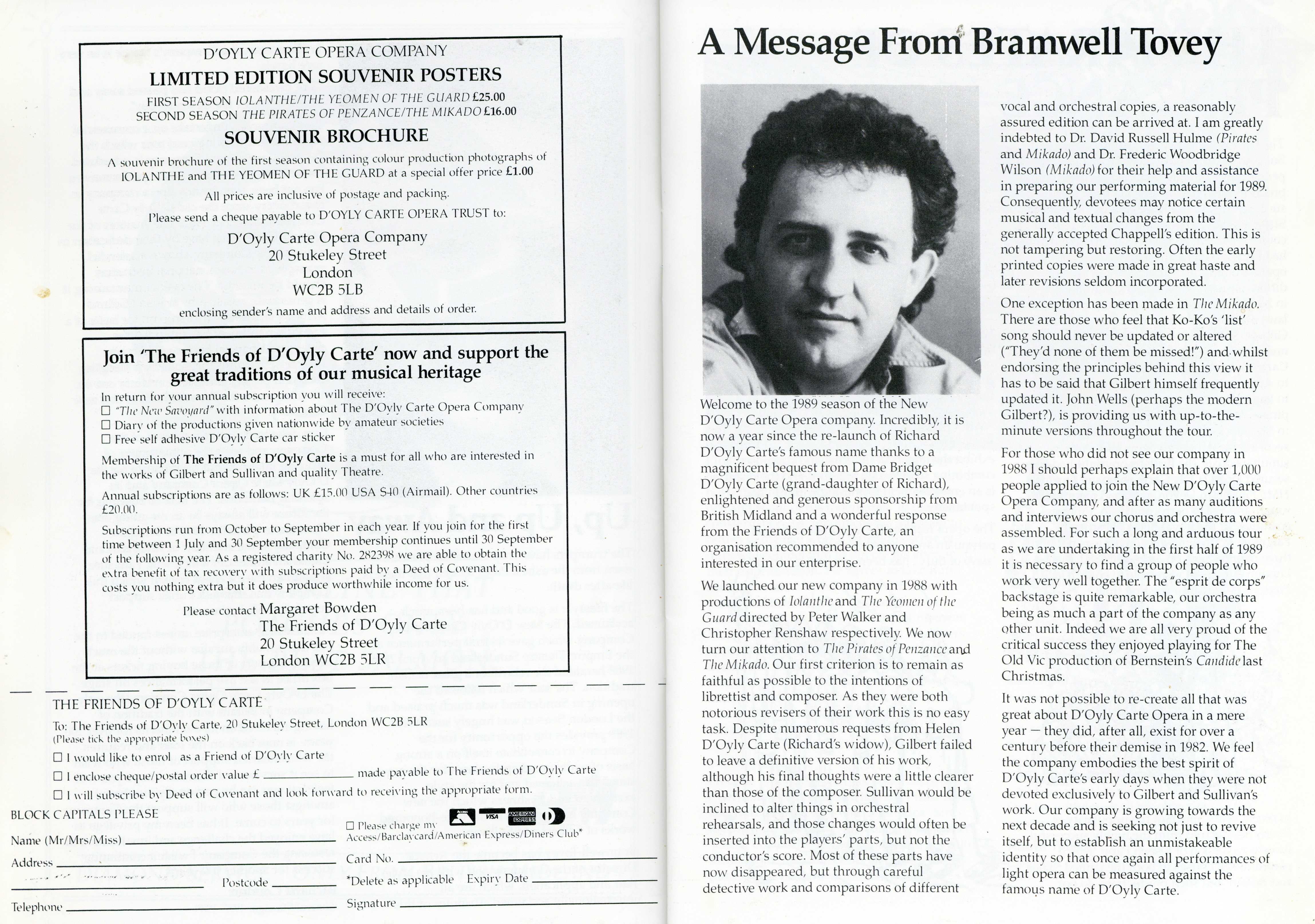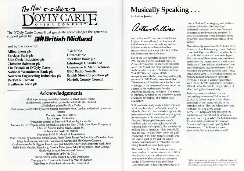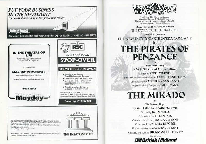 The New D’Oyly Carte Company was revived for short seasons and tours from 1988, including this 1989 tour of The Pirates of Penzance and The Mikado, under the artistic directorship of Bramwell Tovey.