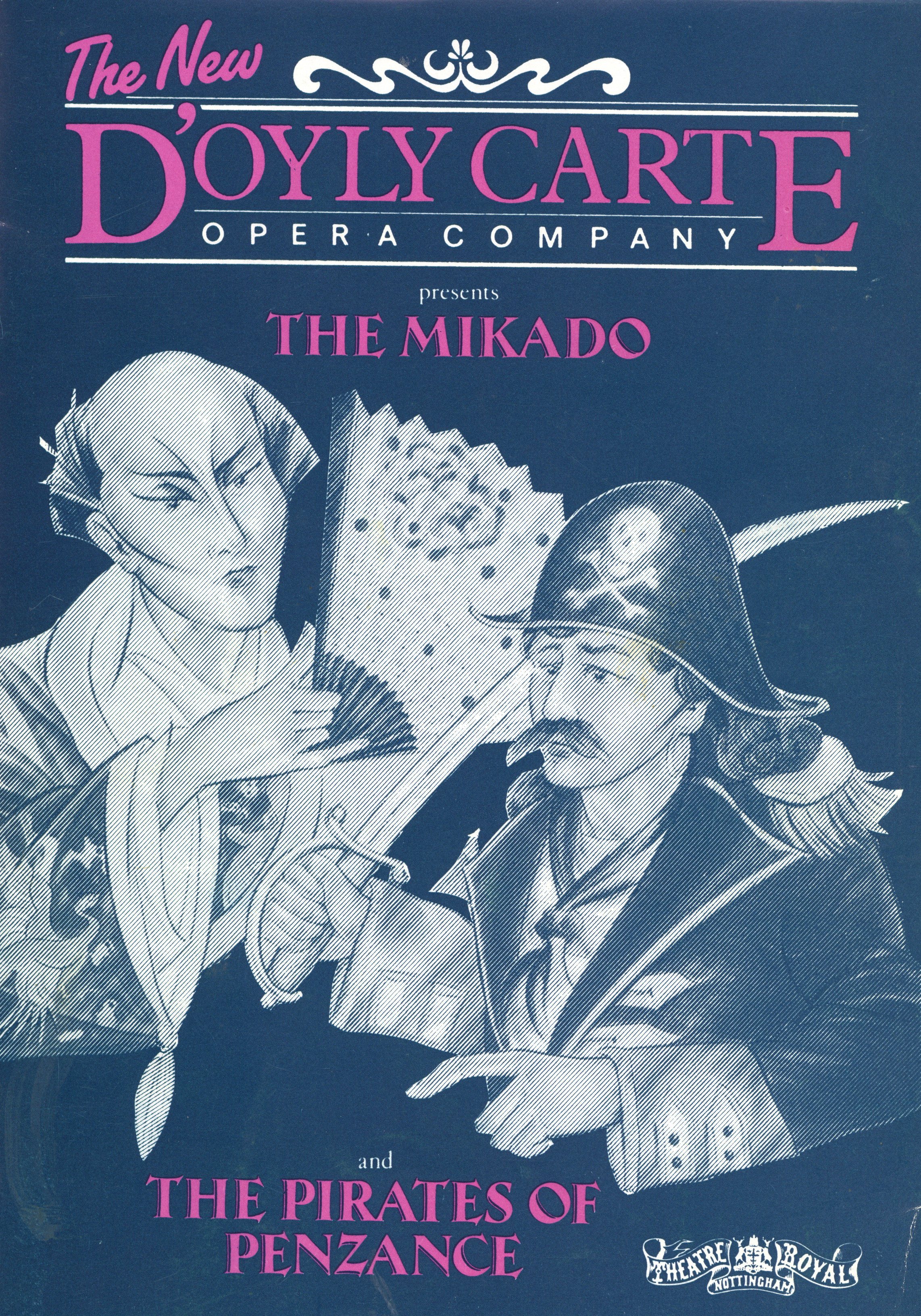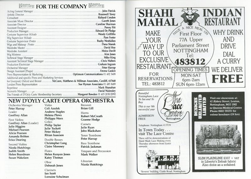 Selected pages from programme for the New D'Oyly Carte Opera Company productions of The Pirates of Penzance and The Mikado by Gilbert and Sullivan.