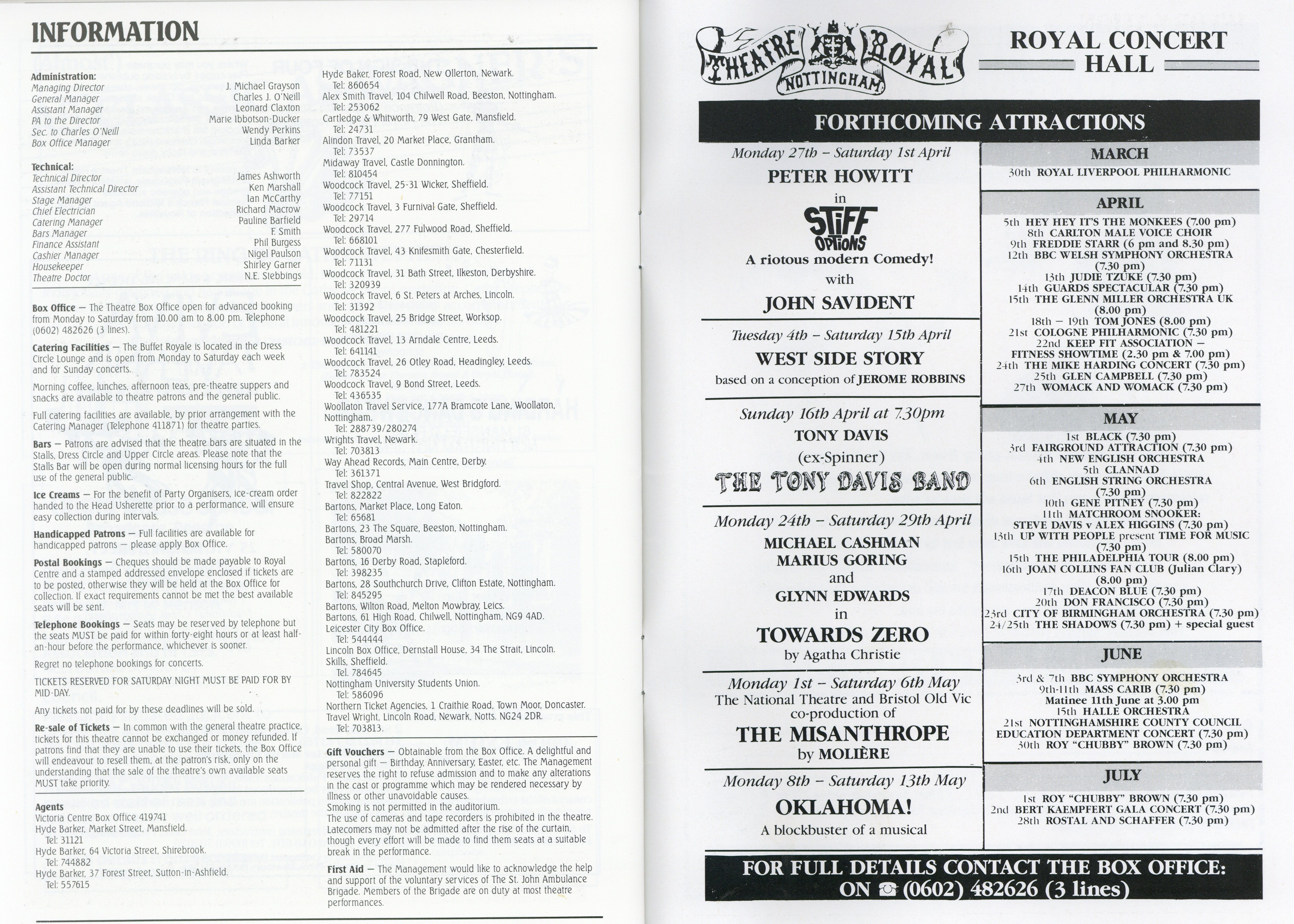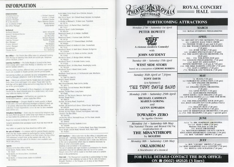 This programme has been made available as a loan to the Theatre Royal for digitisation and uploading to the archive by the Wilson family in Nottingham. Their collection of Theatre Royal ephemera relates from 1980 to 2000. This was a period of regular theatre visits, inspired by their youngest son, described as “the driving force” for seeing so many shows at the venue.