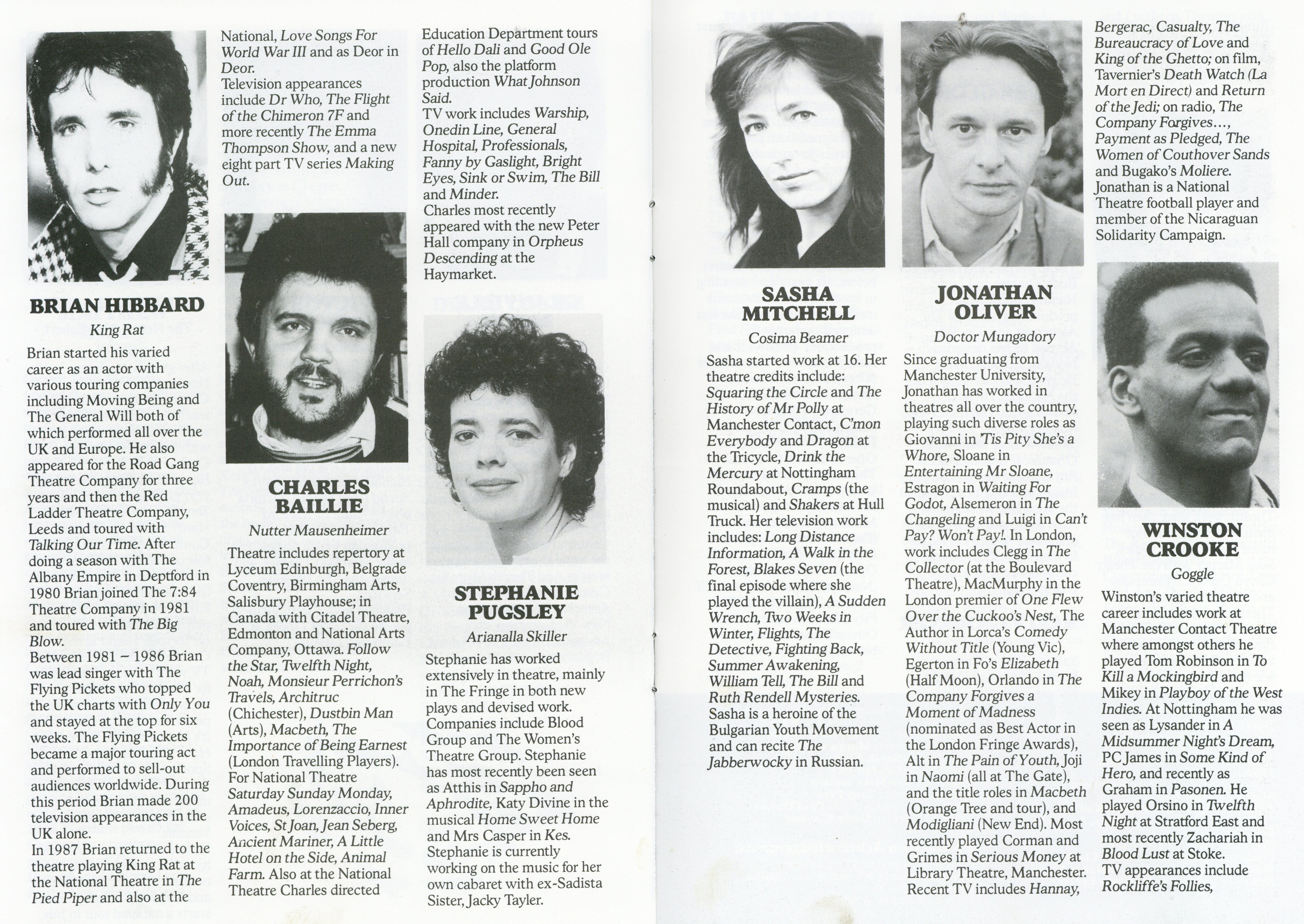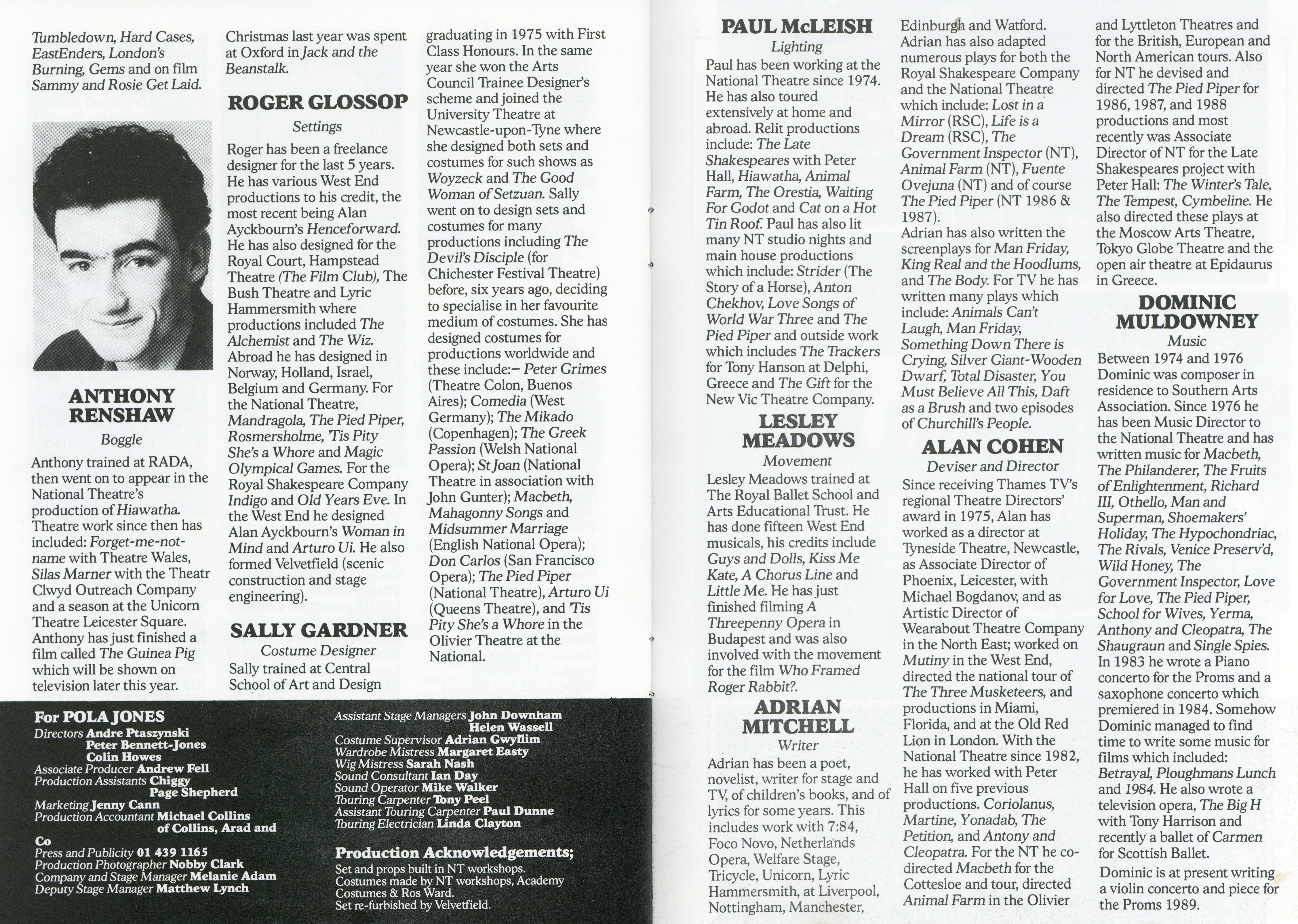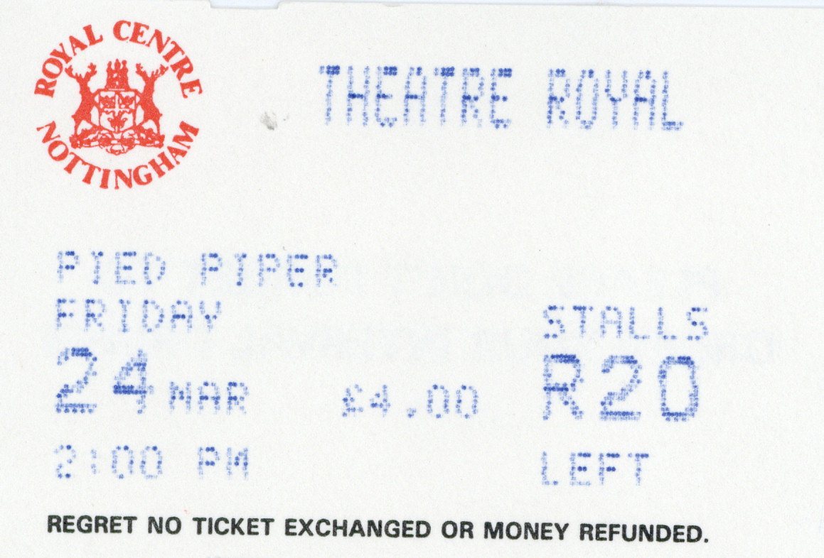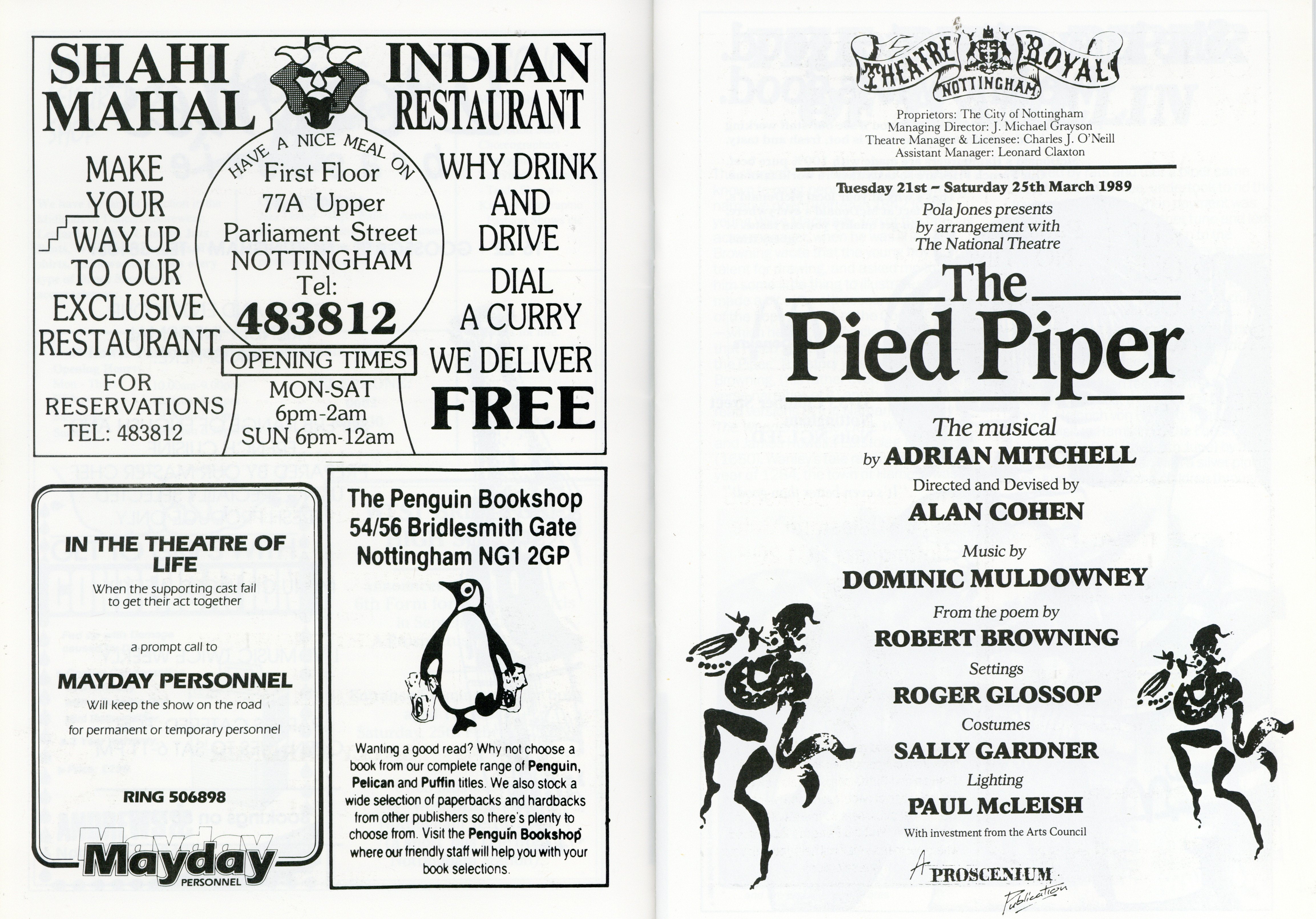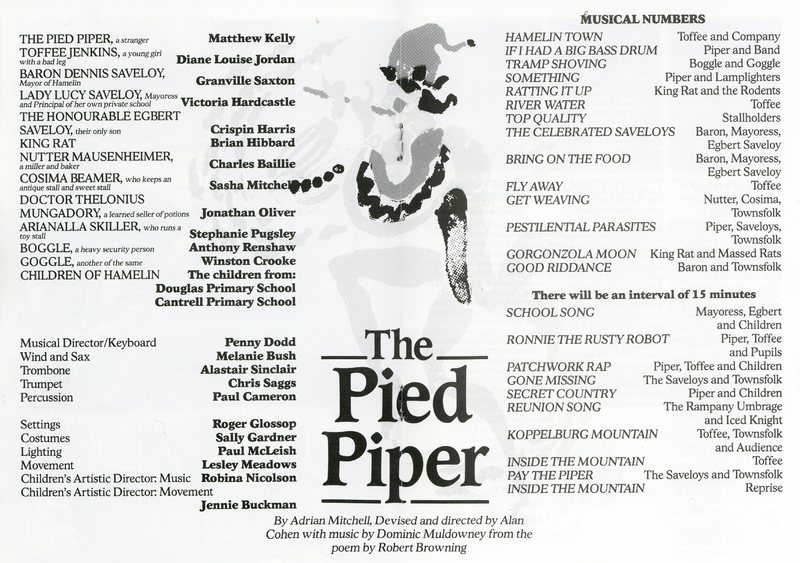 Selected pages from programme and show ticket for The Pied Piper by Adrian Mitchell.