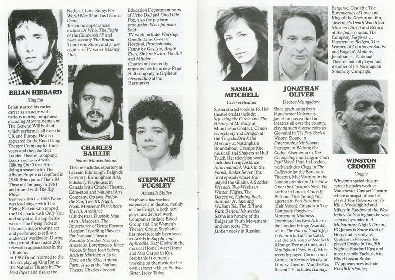 Also, in the cast were Brian Hibbard, Jonathan Oliver, Anthony Renshaw, Winston Crooke, Granville Saxton, Victoria Hardcastle and Crispin Harris.