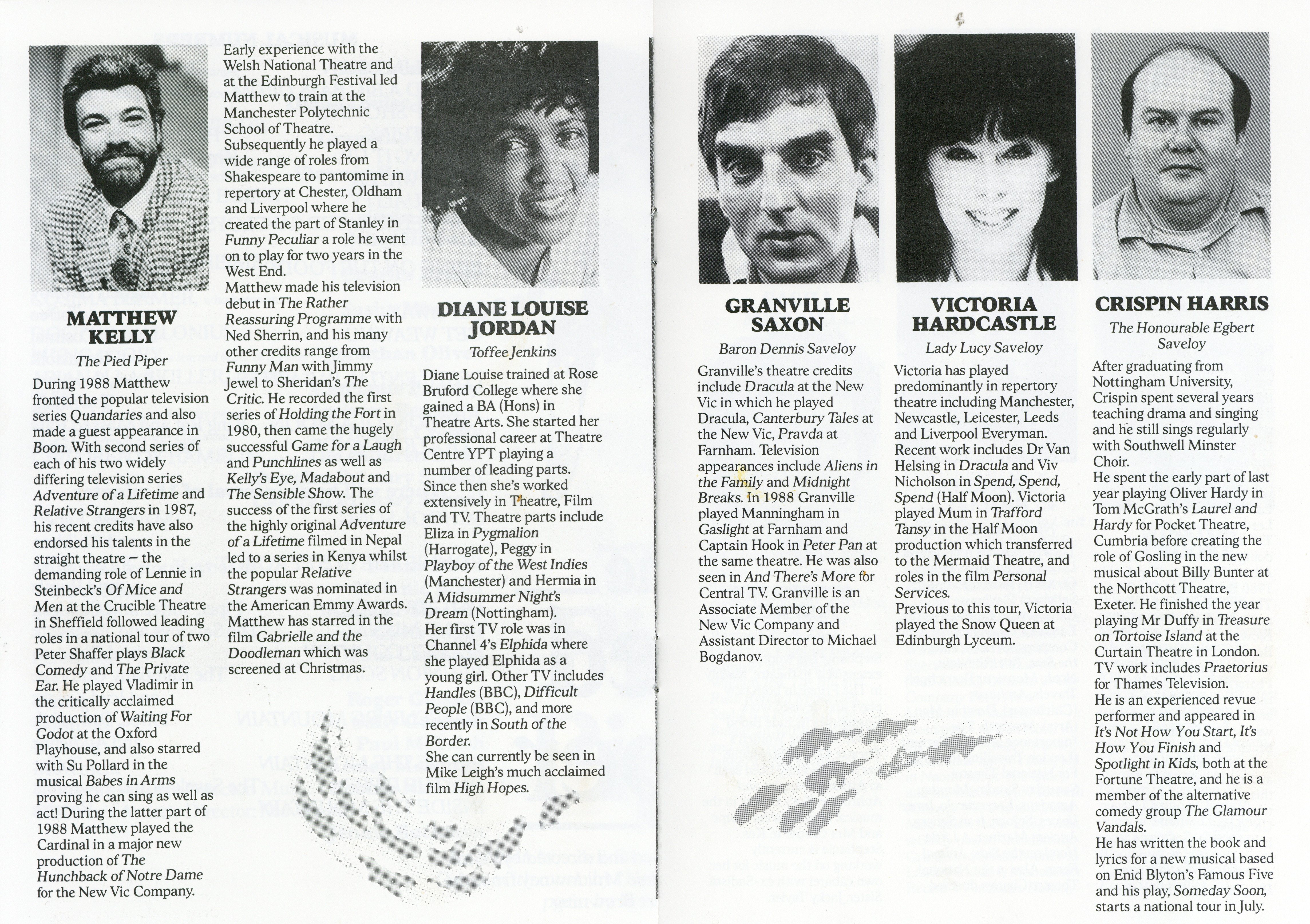 This 1989 touring revival starred Matthew Kelly in the title role, alongside Diane Louise Jordan, who was to become a presenter on BBC’s Blue Peter the following year in 1990.