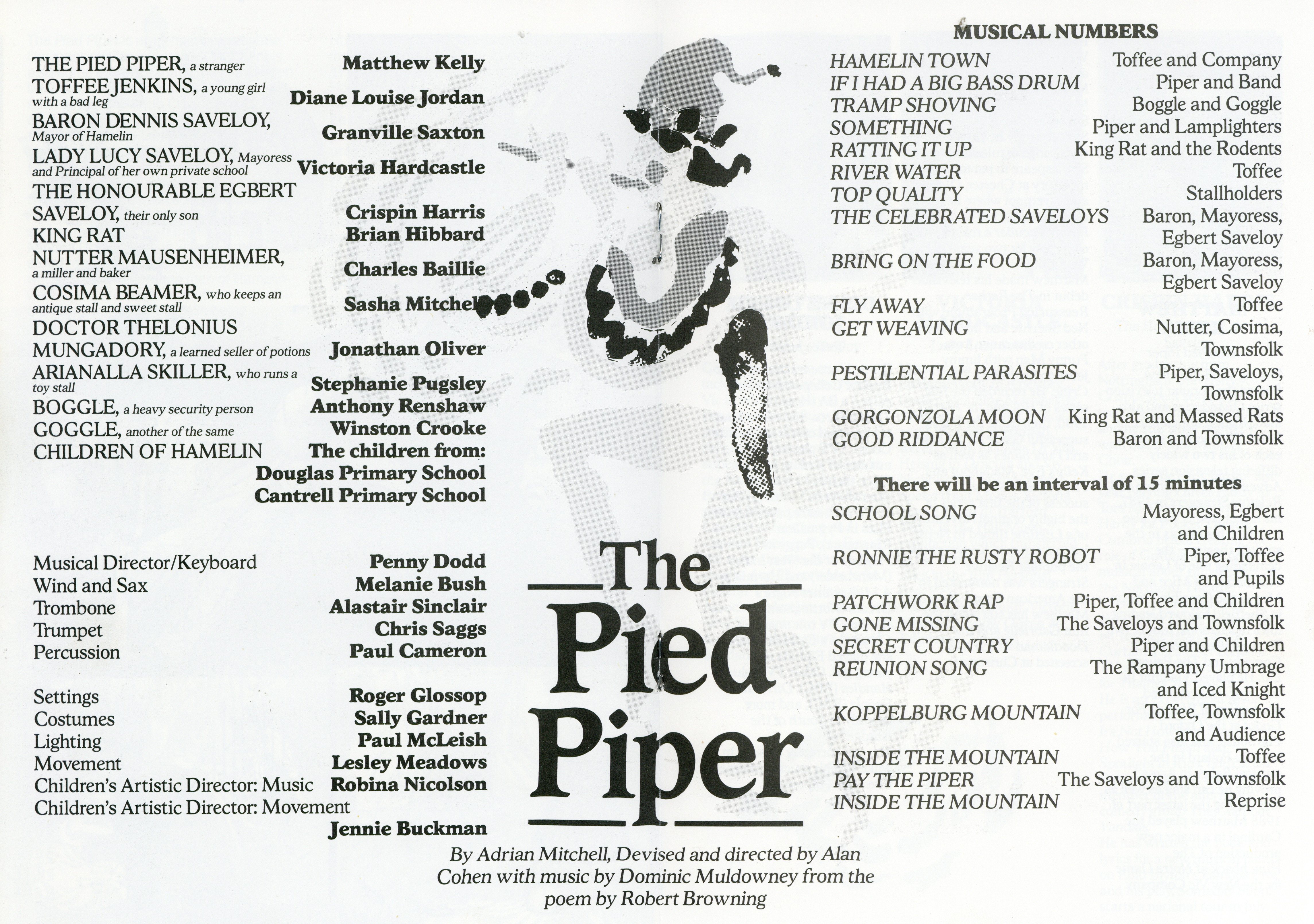 The Pied Piper by poet and playwright Adrian Mitchell premiered at the National Theatre in London in 1986.