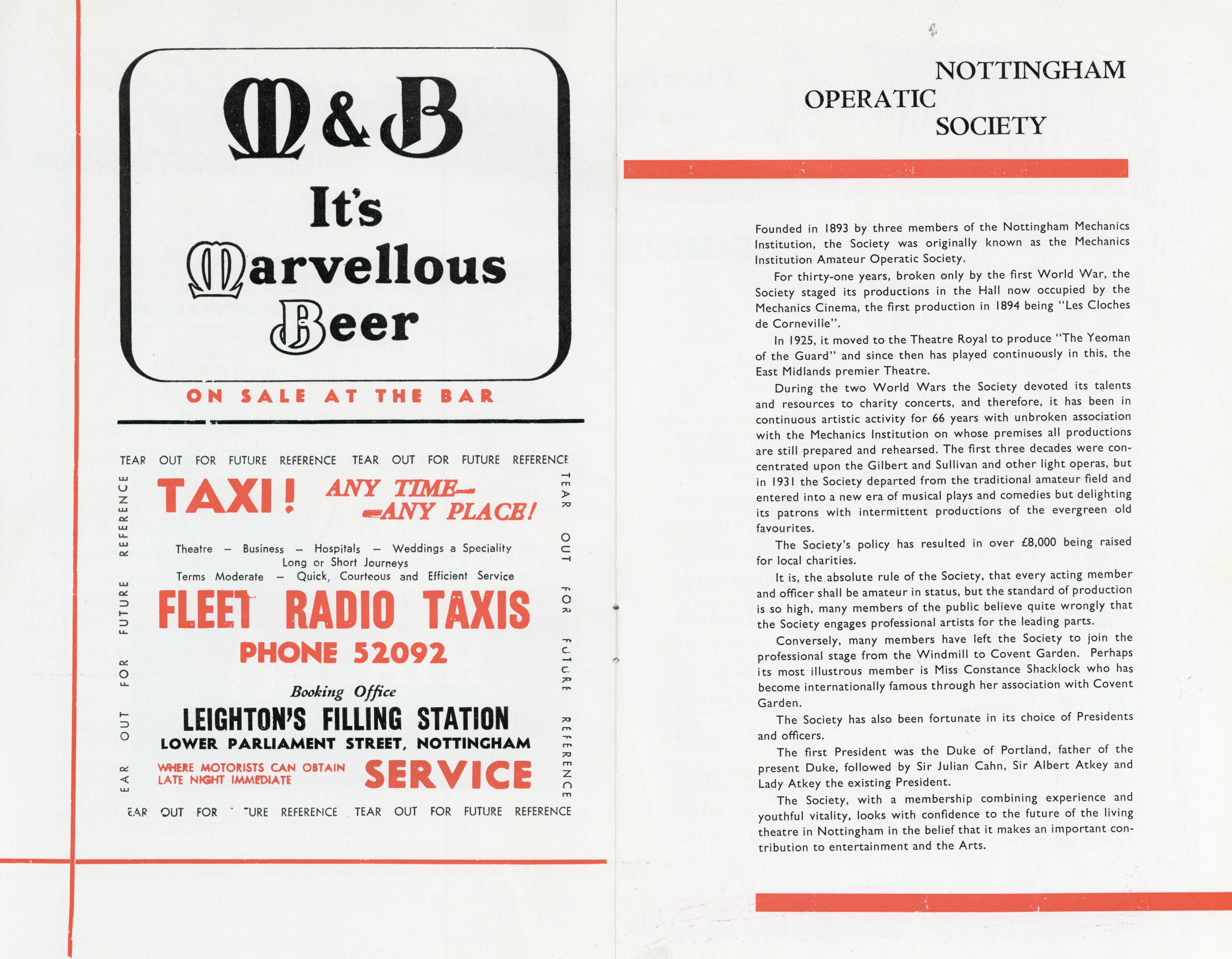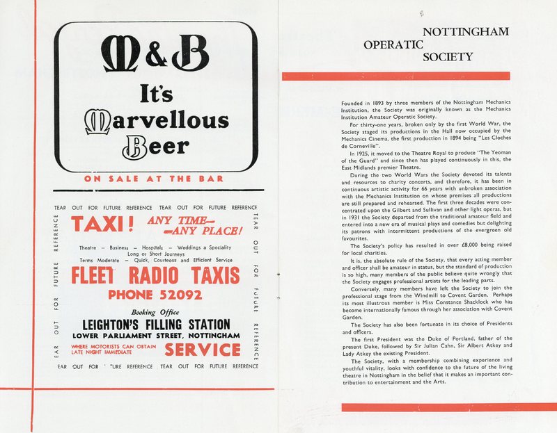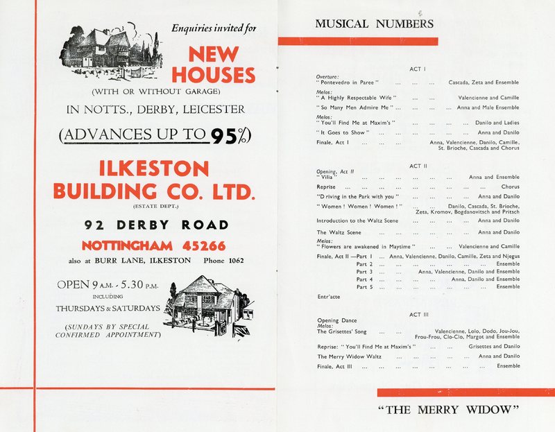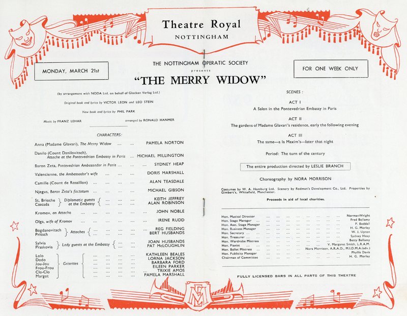 Full programme for Nottingham Operatic Society production of The Merry Widow by Franz Lehar.
