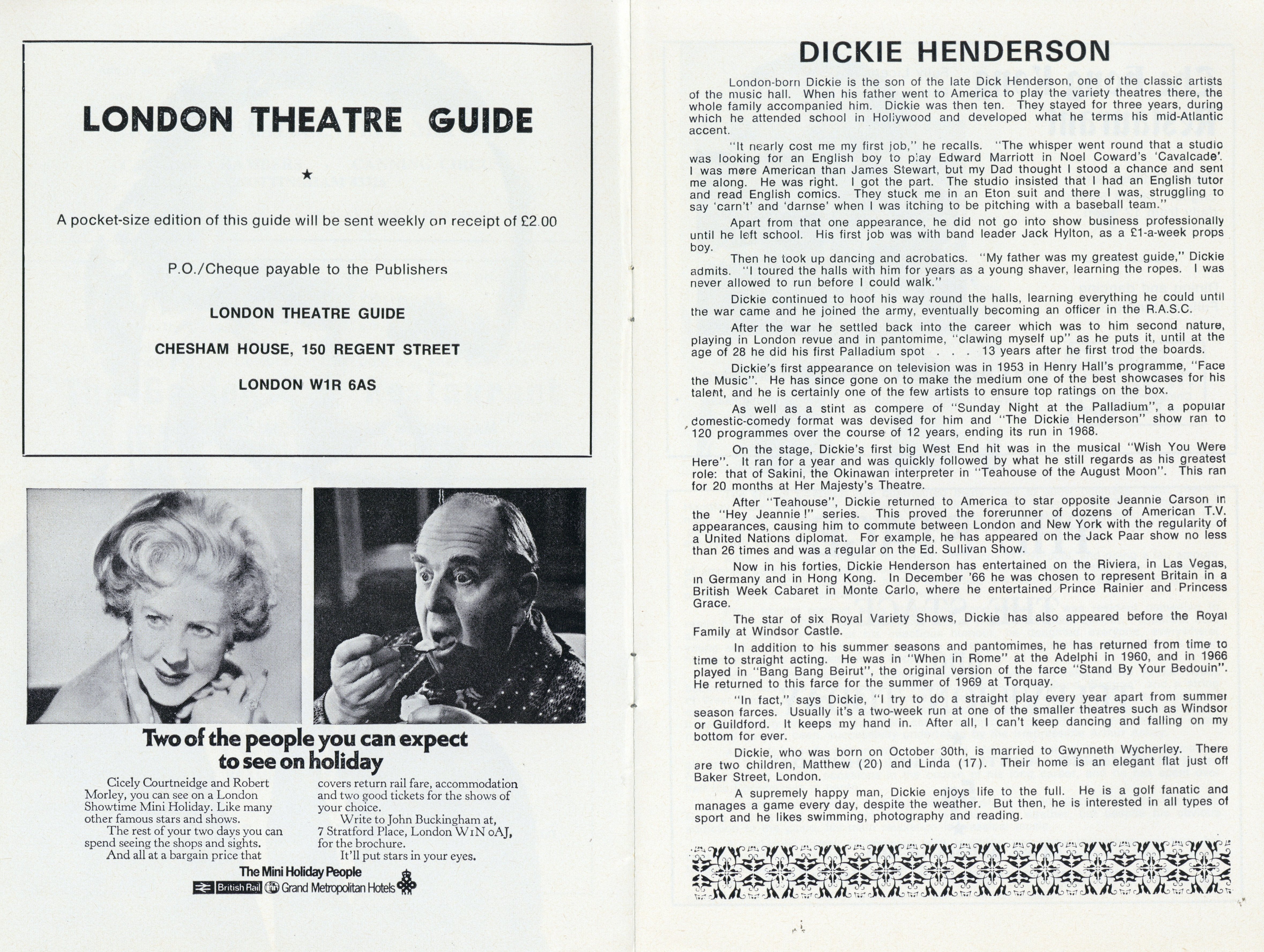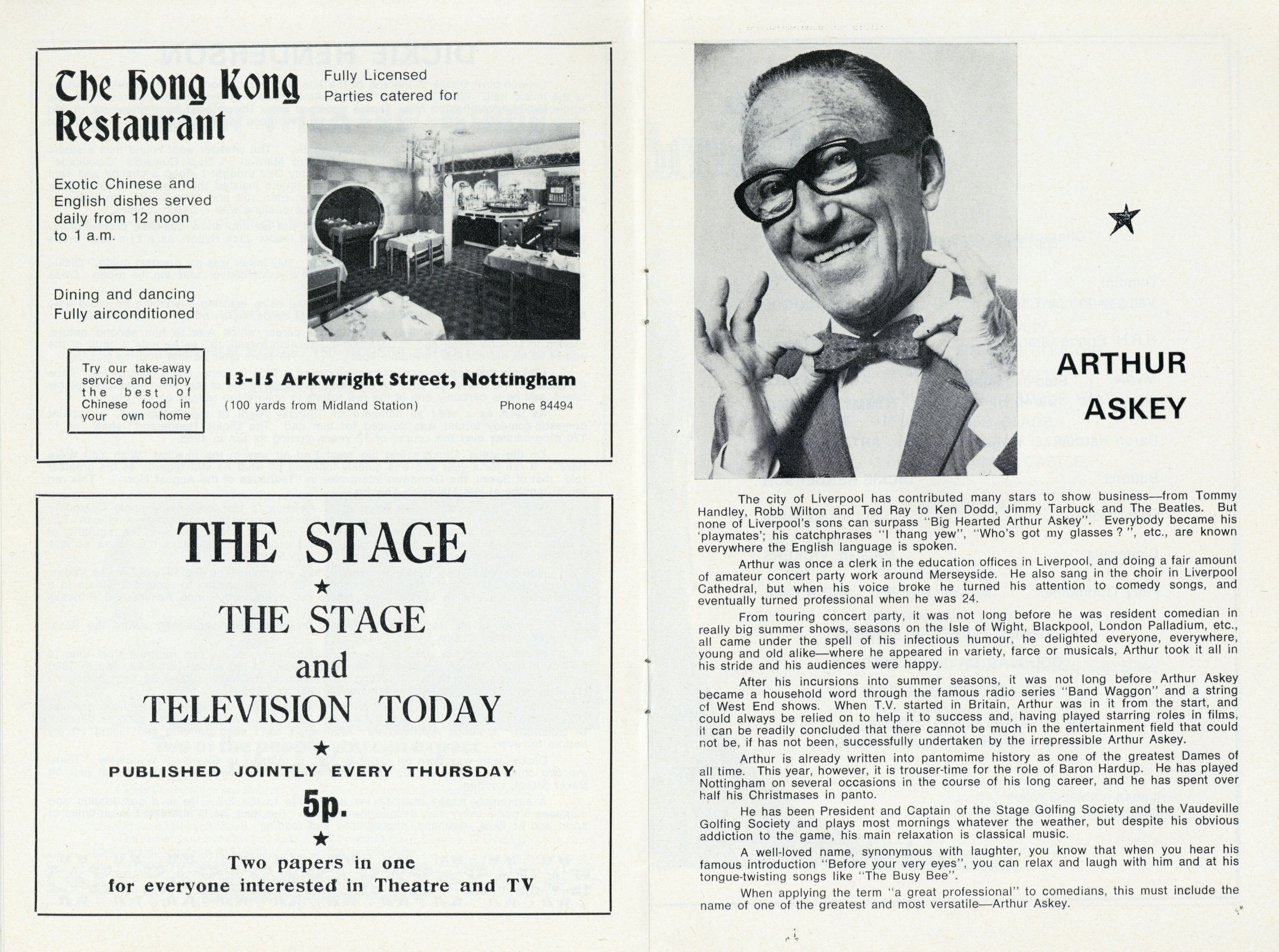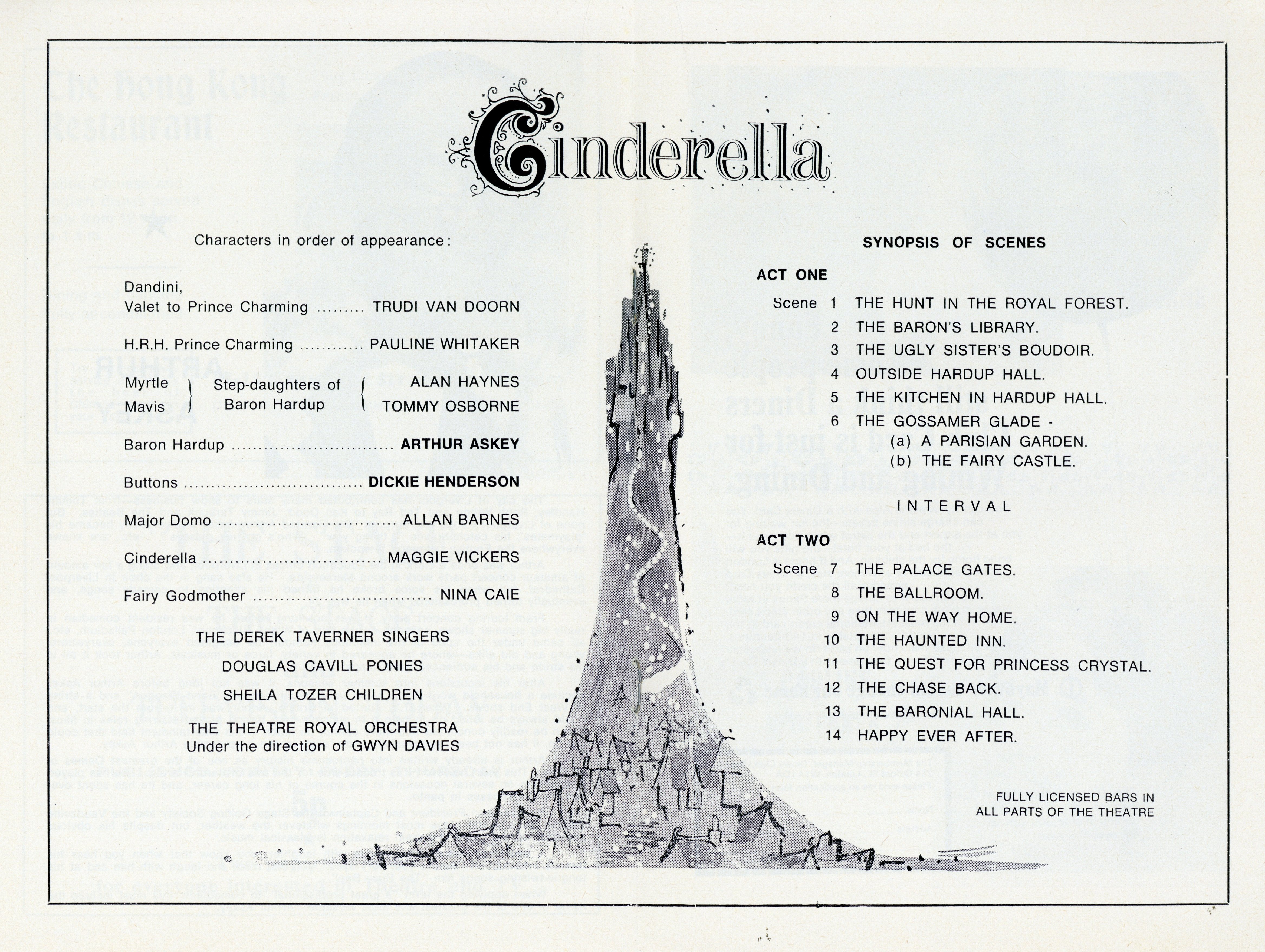 This production of Cinderella starred Dickie Henderson, Arthur Askey, Alan Haynes & Tommy Osborne, Pauline Whitaker and Maggie Vickers.