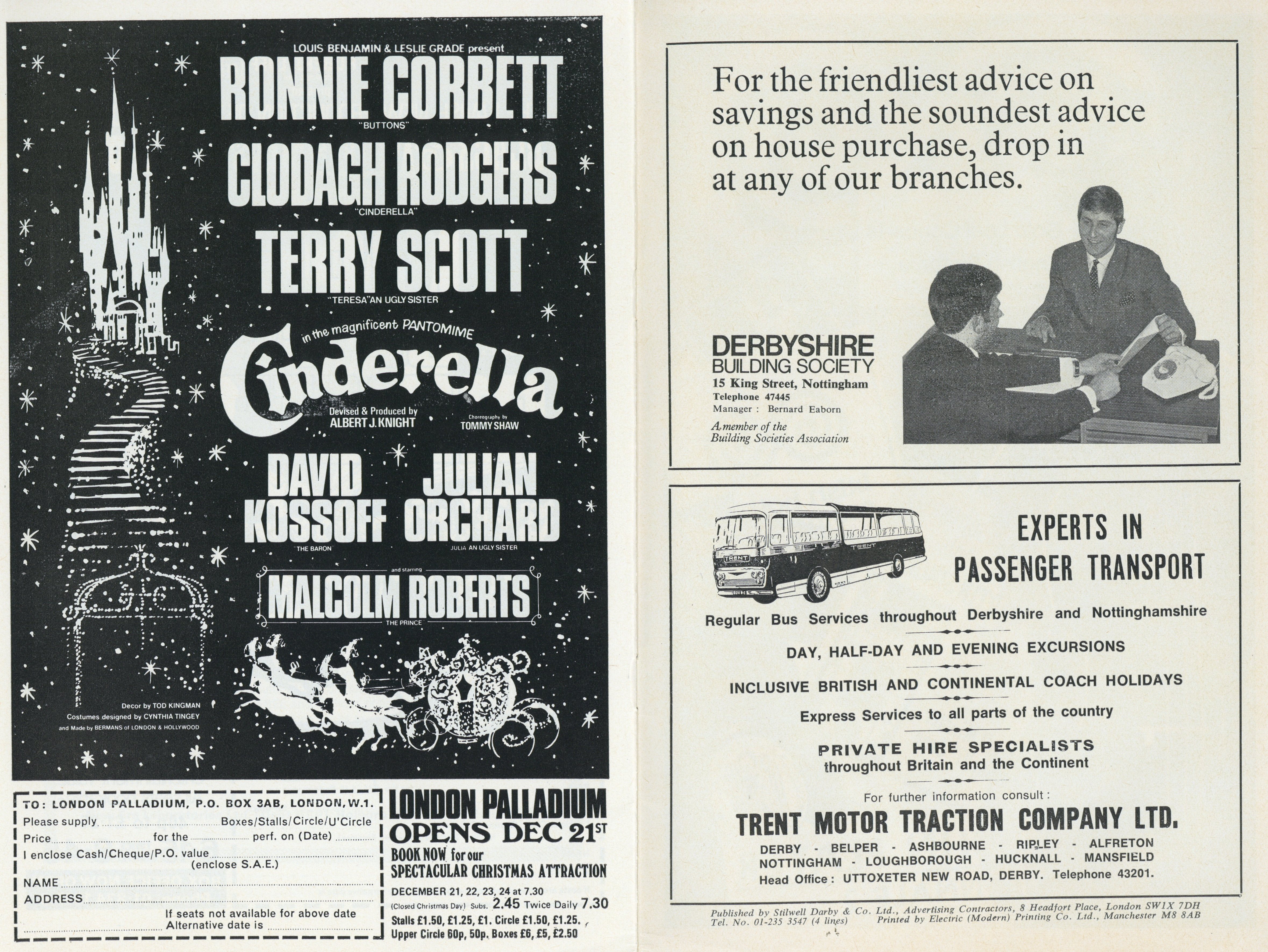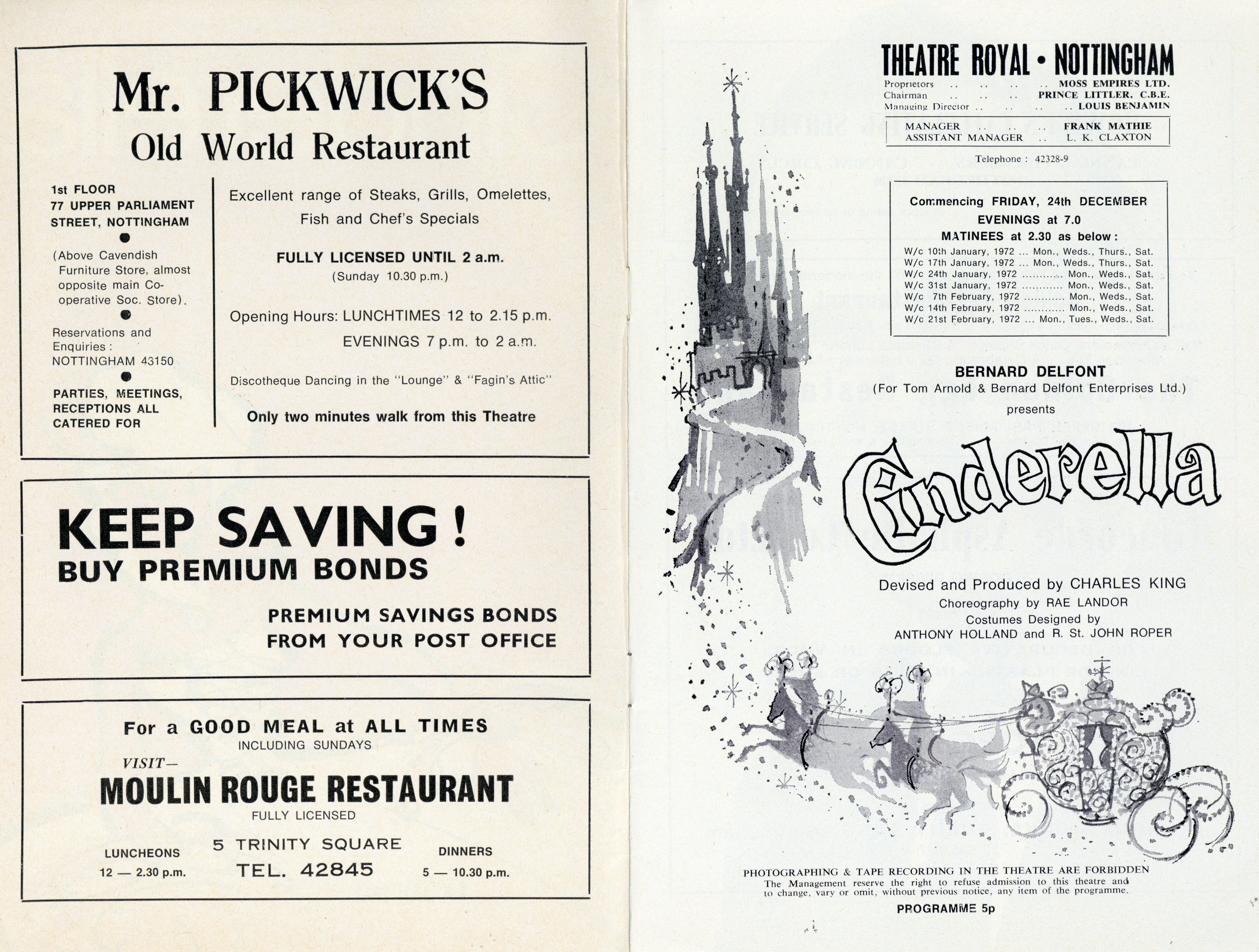 Full programme for Cinderella, the Theatre Royal Pantomime for 1971.