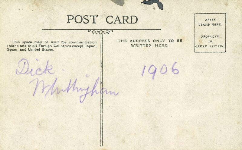 This postcard forms part of a large scrapbook collection donated to the Theatre Royal archive by Diane Meadwell from Sandiacre. Her great grandfather was Bernard Hill, the former landlord of The Sun Inn on Parliament Street and who later became the Stage Door Keeper at the Theatre Royal. Bernard’s daughter Edith also worked at the Theatre Royal as an usherette.