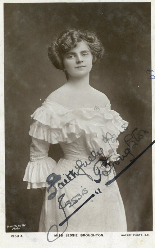 Promotional postcard of Jessie Broughton, appearing in 1909 touring production of A Waltz Dream.
