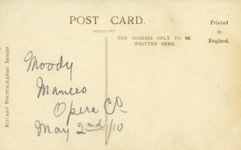 Promotional postcard of Fanny Moody, appearing in Moody Manners Opera Company's touring production of Richard Wagner's Tannhouser in 1910.