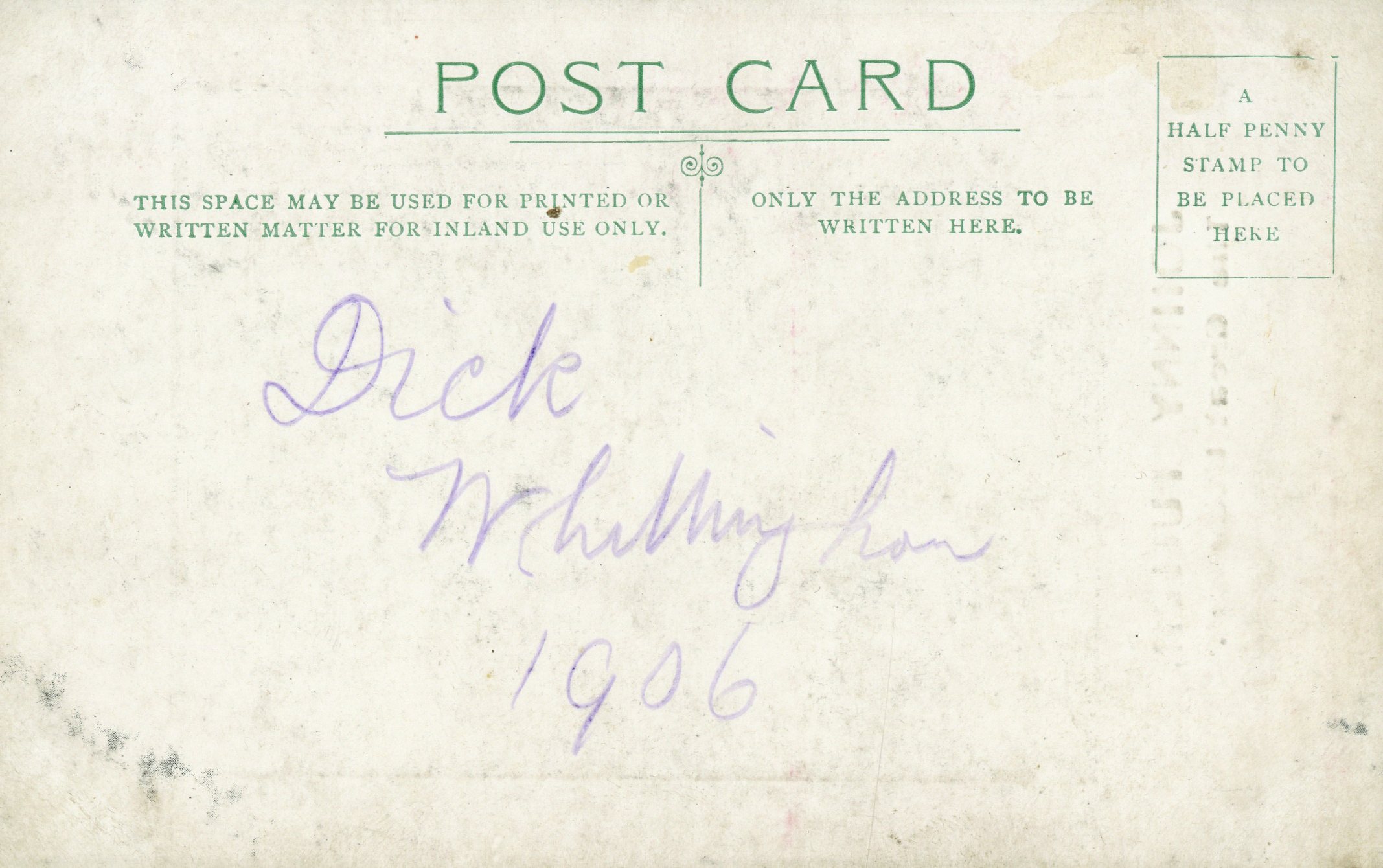 Promotional postcard of Johnny Fuller, appearing in Dick Whittington, the Theatre Royal Pantomime for 1906.