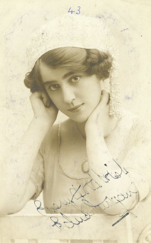 This postcard forms part of a large scrapbook collection donated to the Theatre Royal archive by Diane Meadwell from Sandiacre. Her great grandfather was Bernard Hill, the former landlord of The Sun Inn on Parliament Street and who later became the Stage Door Keeper at the Theatre Royal. Bernard’s daughter Edith also worked at the Theatre Royal as an usherette.