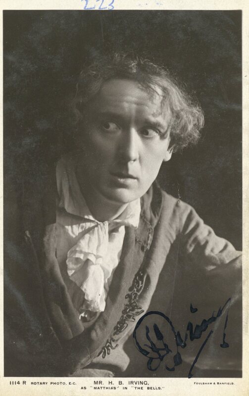 Promotional postcard of H.B. Irving, starring in The Bells by Leopold David Lewis in 1908.