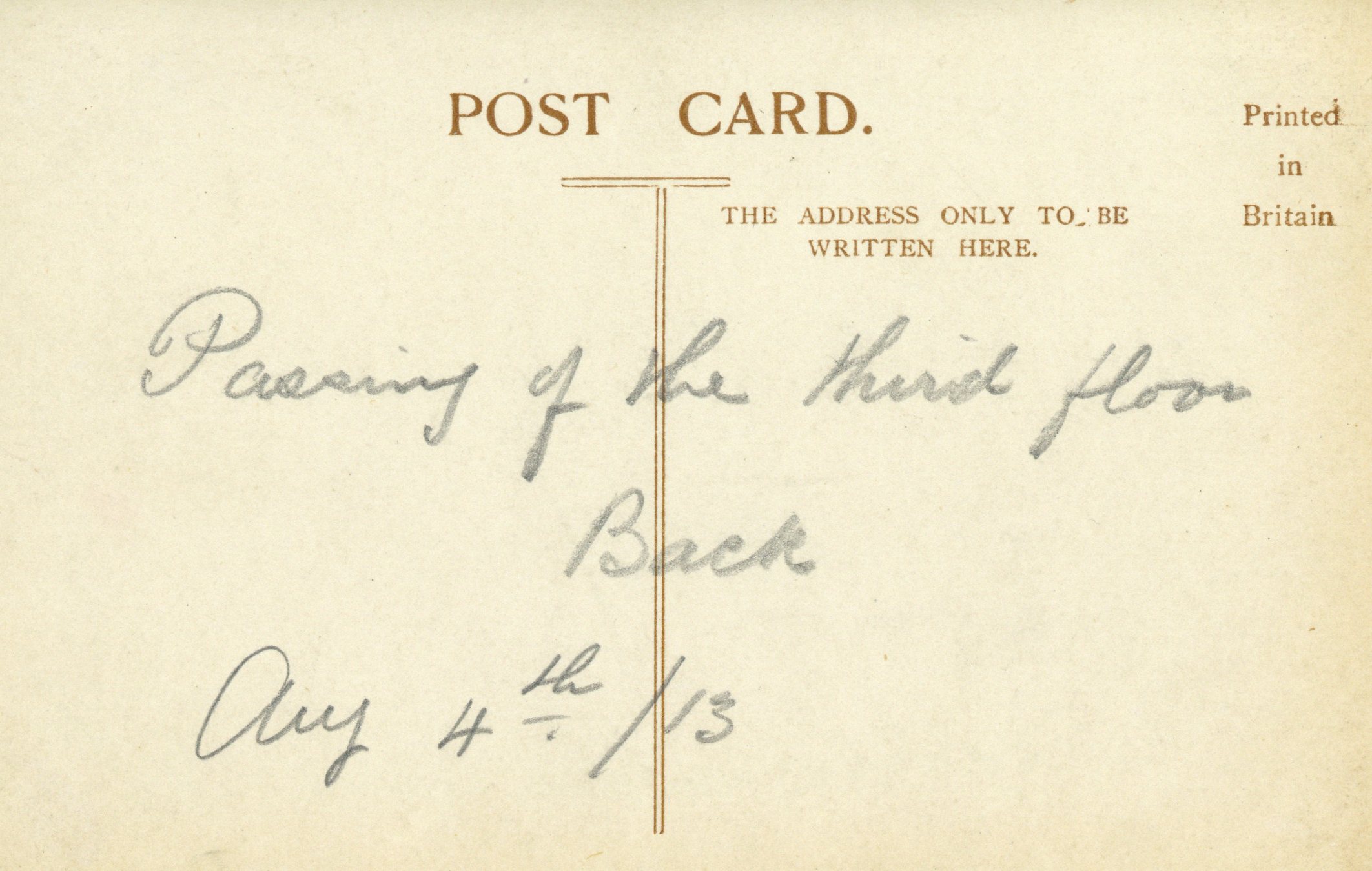 Winifred Beech starred in in The Passing of the Third Floor Back, which ran at the Theatre Royal from 4 to 9 August 1913.