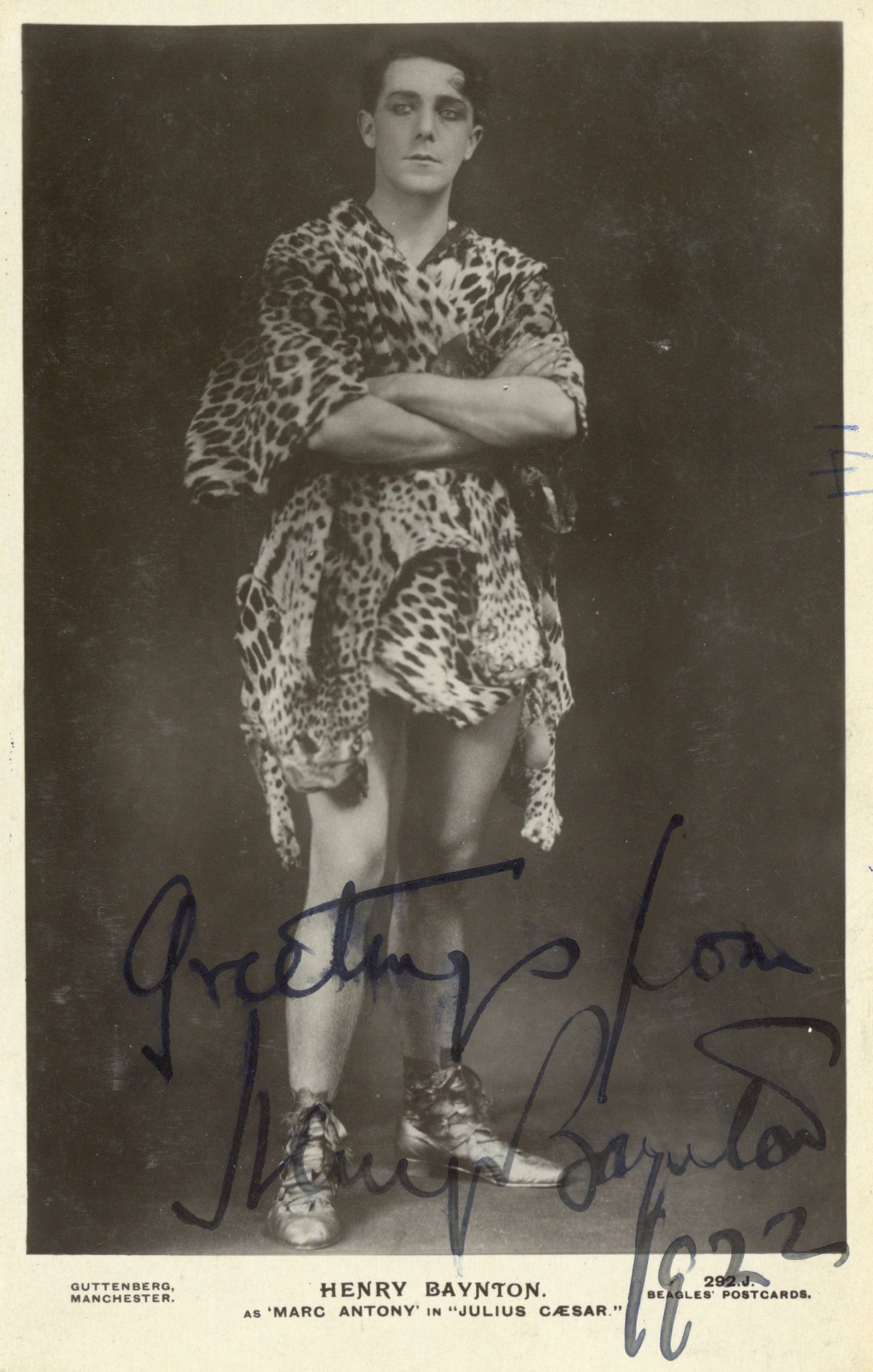 Despite the postcard image, Baynton did not perform in Julius Caesar during this, his only 1922 visit to the Theatre Royal.
